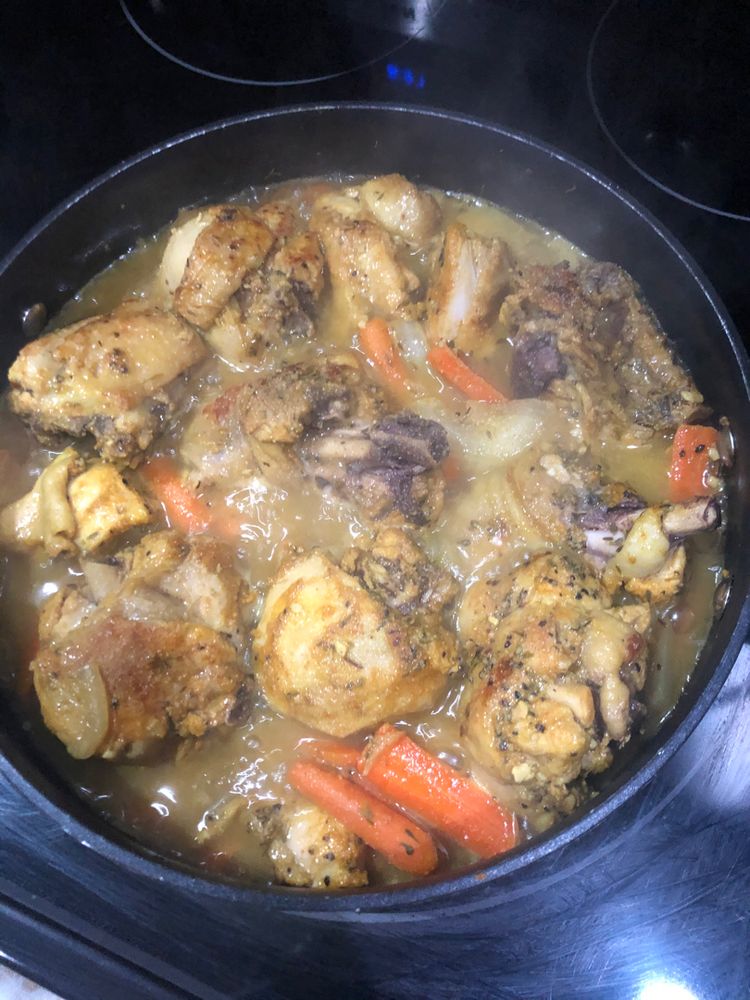 For the slow cooker or burn curry method, follow the steps given above. For tastier chicken, marinate them with the curry and other listed ingredients overnight. Or for several hours if short in time. To keep the temperature level consistent, use hot water. To avoid burning, scrape off excess seasoning like scallion and onion before searing the chicken. When adding the potatoes, we don't want them breaking completely so don't add them too early. For this recipe, you can add any variety of white or orange sweet potatoes. You can use any chicken parts as long as they are boneless. Feel free to remove the chicken skin if you are worried about excess fat. Wash the meat before seasoning with lemon/lime/vinegar to follow the Caribbean culture. If fresh thyme or pimento berries are not available, you can use 1 tbsp dried thyme and 1/4 tsp allspice instead.