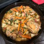 To make this a one-pot meal, before adding the chicken back, add the diced potatoes and carrots to the pan. Place the chicken on top and roast for about 20 to 30 minutes until the veggies are tender.
